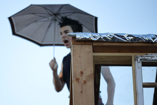 Mit dem Lärm, den die ins Tal reitenden Riesen machen, und einer verängstigten Schauspielertruppe endet das von CLARA GERVAIS als Oper für sprechende Schauspieler vertonte Stück in einem Oratorium mit lebenden Bildern und schließlich in - "plötzlich große Stille."